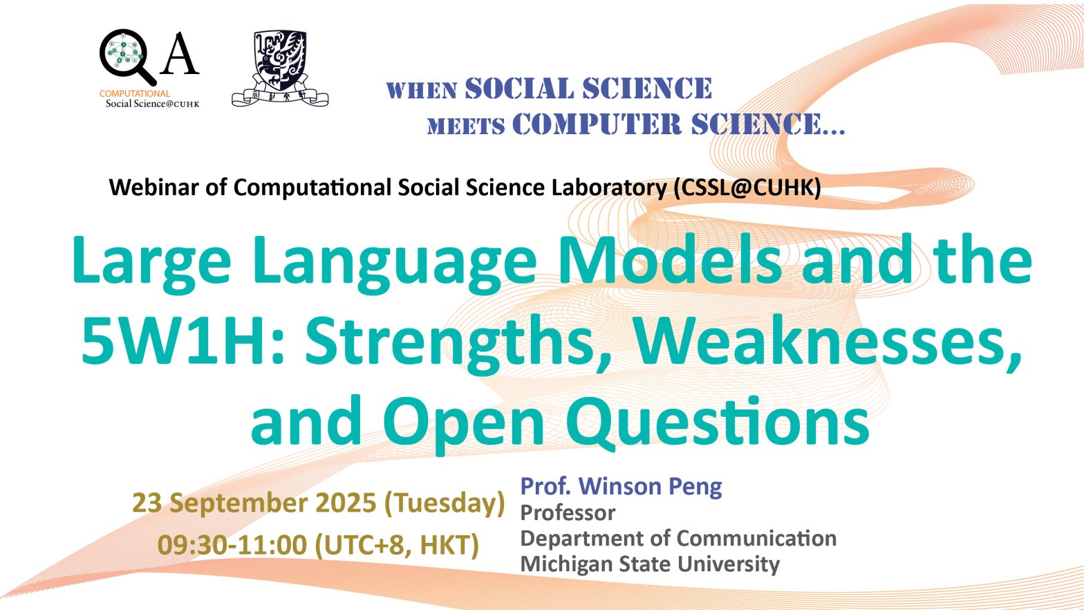 Abstract: Large language models (LLMs) are increasingly employed in social science research as tools for analyzing text, generating insights, and assisting with theory development. Yet their contributions remain uneven, with strengths in some domains and significant limitations in others. This talk evaluates LLMs’ potential and constraints through the classic “5W1H” framework: What, Who, Whom, Where,… Continue reading Large Language Models and the 5W1H: Strengths, Weaknesses, and Open Questions